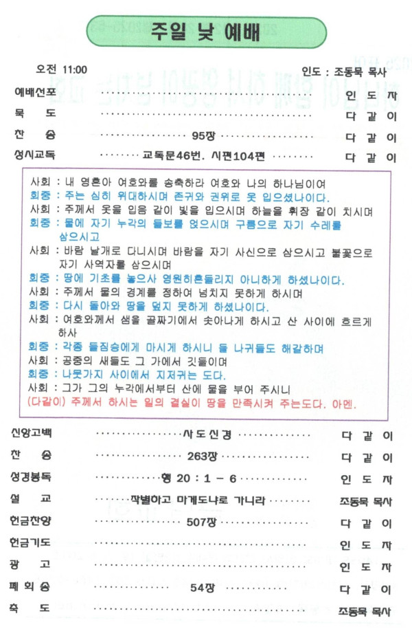 2025-12-28 주일 예배순서입니다 페이지 정보 작성자 최고관리자 작성일26-01-29 12:13 조회70회 댓글0건 관련링크 이전글 다음글 목록 본문 2025-12-28 주일 예배순서입니다 댓글목록 등록된 댓글이 없습니다. 이전글 다음글 목록